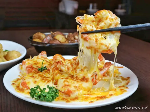 同場加映小份400元的芝士焗烤蝦,起司控可別錯過啦!將活蝦先蒸過再鋪上一層滿滿的邪惡起司下去焗烤,裡頭加了些許的美乃滋來提味,濃濃的起司香氣,多了淡淡的甜味,還超會勘西,不管大人小孩都超喜歡這道