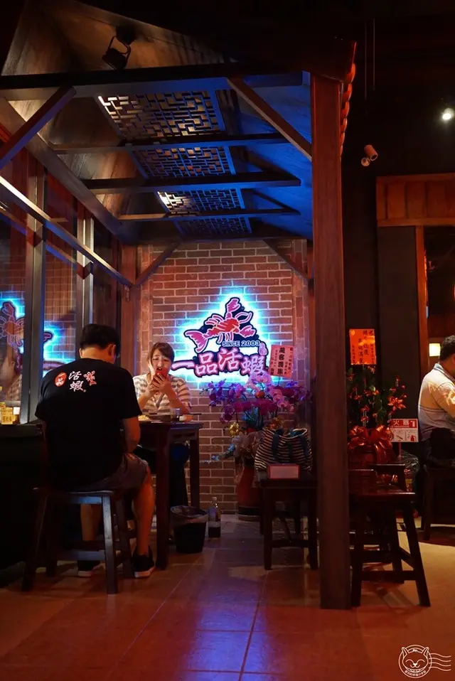 延續台北總店的風格,一品活蝦台中店走的也是「台式居酒屋風格」,台灣味+古早味的裝潢很有親切感,黑色招牌有種阿尼基的威儀感,有點霸氣。