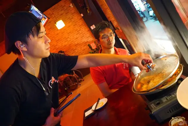 高粱酒的甘醇香氣隨著蒸氣散出鍋外,非常香!>@<