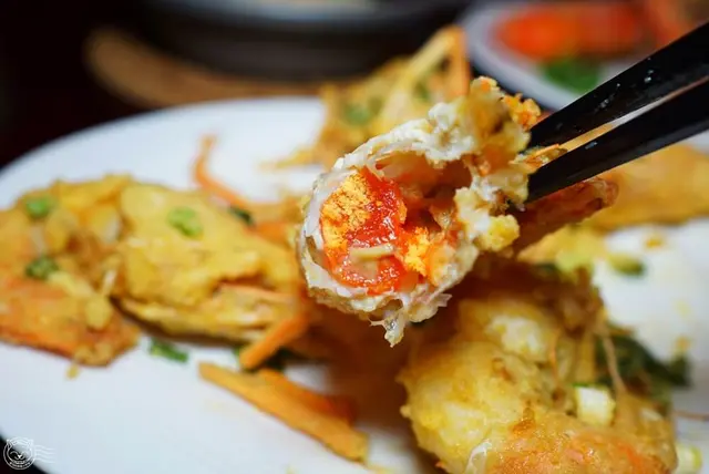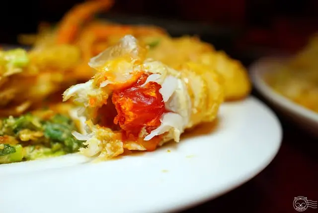 一口咬下,鹹蛋黃滋味濃烈到我要醉了,跟蝦肉超搭,連炸到酥脆的蝦尾巴星羽也不放過,越嚼越有味,建議一定要趁熱品嘗,更好吃喔!