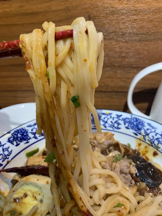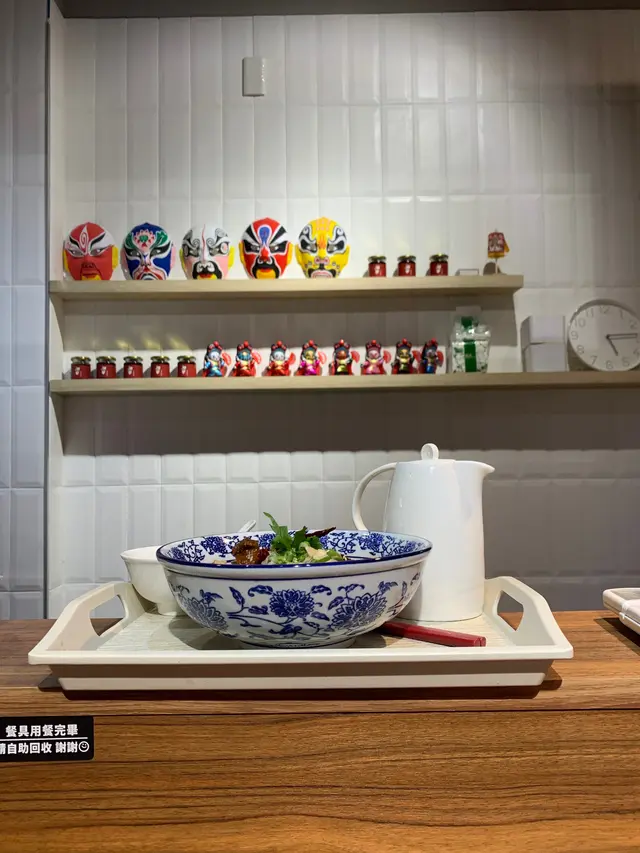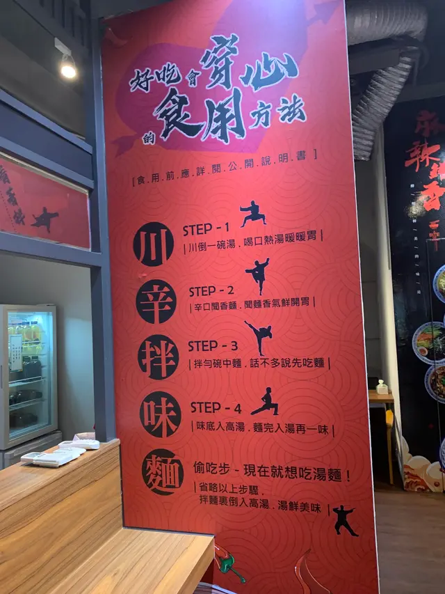 看一下菜單,還不算貴。店內大約十來個座位,賣點為一麵三食,湯跟麵餸分上,先飲湯,再吃乾麵,再把湯倒入,再吃湯麵。為川麵加上新意,綽頭打卡賣點十足!