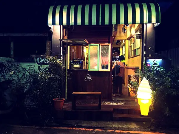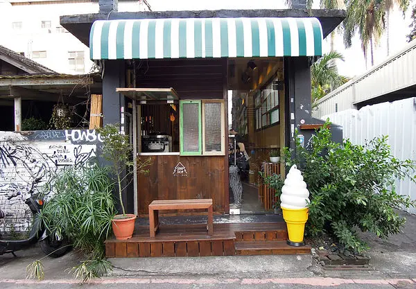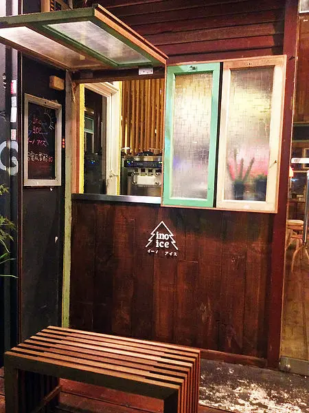 INO ice點餐可從俏皮的復古木製窗口外帶,門口有一張木椅可坐。