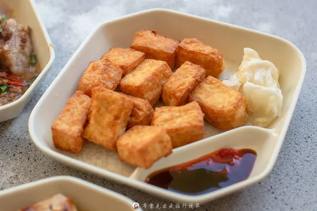 炸豆腐我覺得還不錯,就口感很像是雞蛋豆腐,但比較妙的竟然還有配上泡菜,泡菜很台式很好吃,整體來說大概有80分的水準。