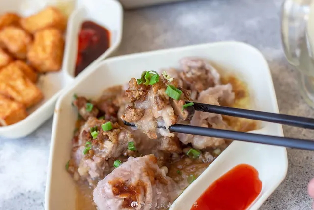 鮮肉芋丸真的是《上寶茶行》的招牌必點茶點,芋頭是整塊的上面還淋上滷肉汁,吃起來口感鬆綿帶有滷肉汁的鹹香,整個很推薦。