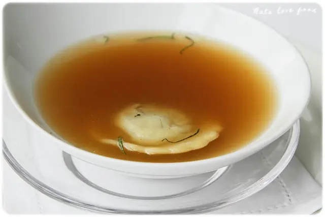 鴨肉蕈菇餃外觀很像義大利麵餃,內餡是綿細的鴨肉和蕈菇,鹹香滋味令人回味無窮。