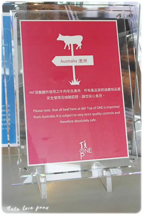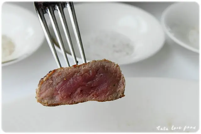 頂餐廳進的牛肉全來自澳洲,飼料來源主要是牧草的澳洲牛,吃起來雖然不比美牛的牛勁兒,可是味道還蠻甘甜的。