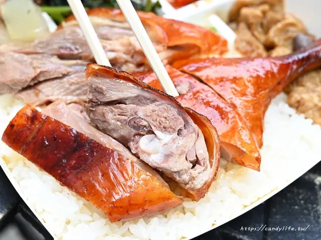 十八燒燒臘專賣店的貴妃雞腿超大一支,幾乎佔據了1/2的便當,肉質非常軟嫩,鮮甜多汁,搭配油蔥醬一起享用,香氣很迷人呢