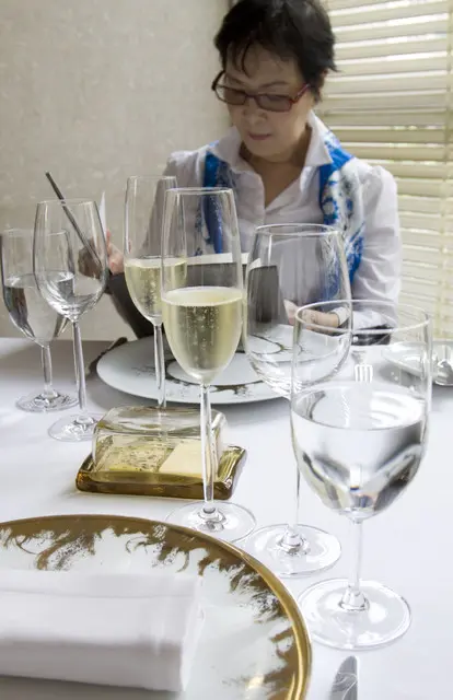 就座後先看看今天有什麼餐點供客人選擇,服務生也順道送上香檳 -