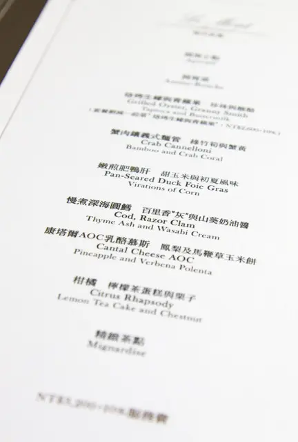 其中的樂沐套餐如果刪減一道前菜 - 烙烤生蠔與青蘋果 珍珠與酸酪,則價錢則為$2,600,