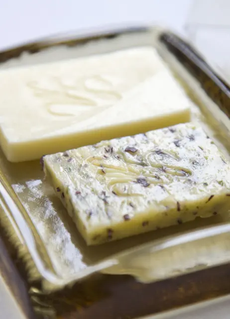 另外附有兩種進口奶油,經過後來的調味後與麵包搭配食用 -