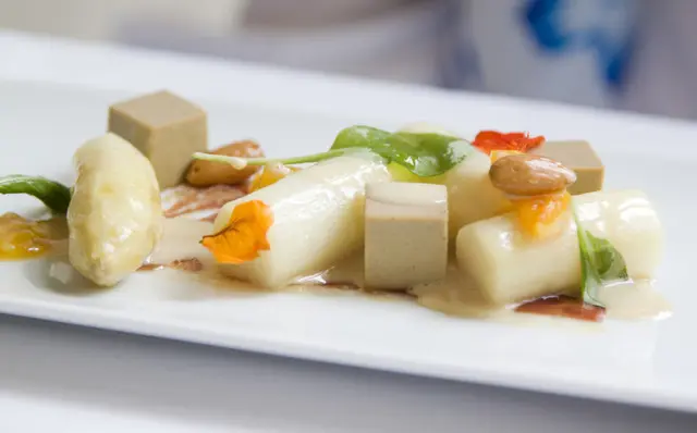 酒精經過處理早已揮發,剩下的就是淡淡的酒香,配上白蘆筍,不太一樣的一道前菜。