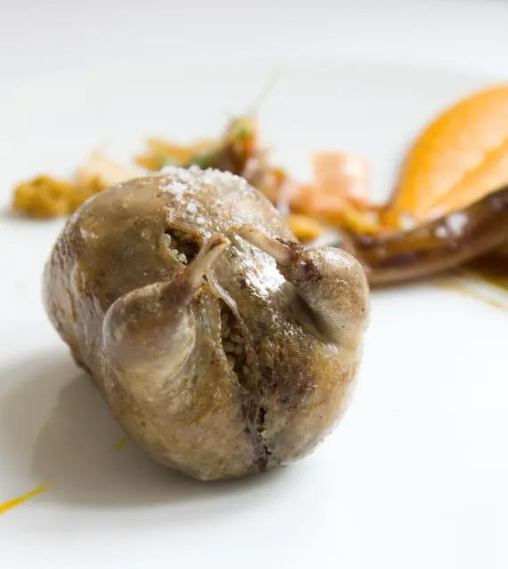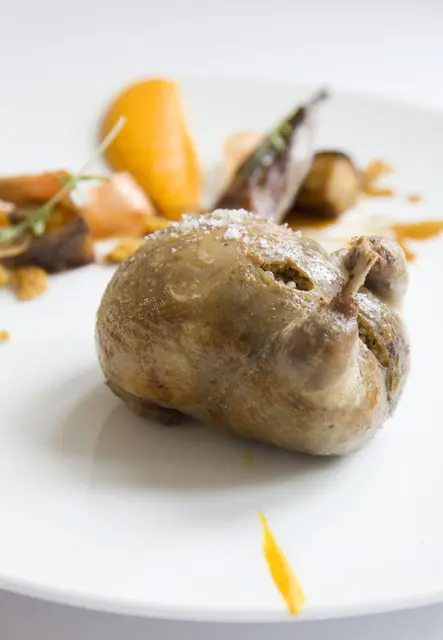 我媽不吃牛肉,所以選了藜麥鑲鵪鶉 佩里戈黑松露與香料胡蘿蔔 -