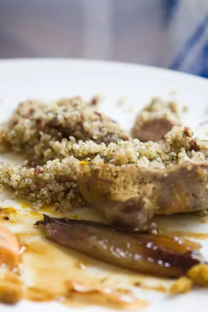 裡面包著的是用藜麥,又稱北非小米拌炒培根及黑松露 -