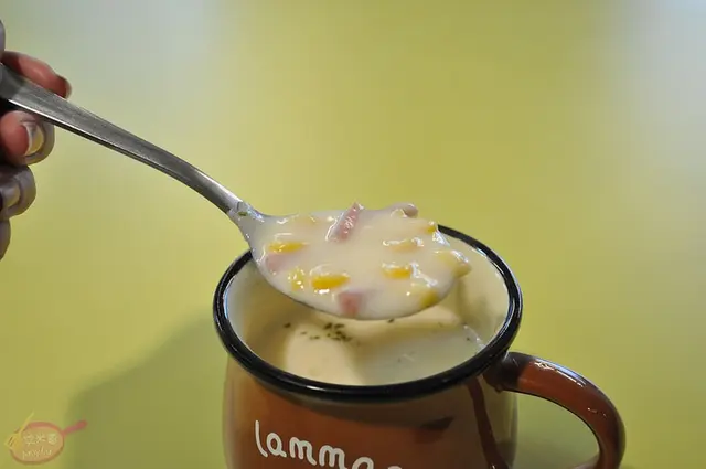 火腿末甜玉米粒給得大方,每一匙都能撈到滿滿的料