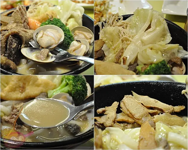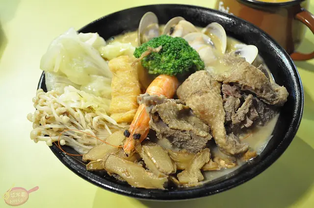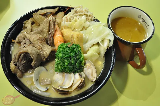 鮮蝦、蛤蜊、油豆腐、綠花椰、金針菇、高麗菜、老薑片....