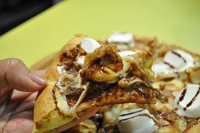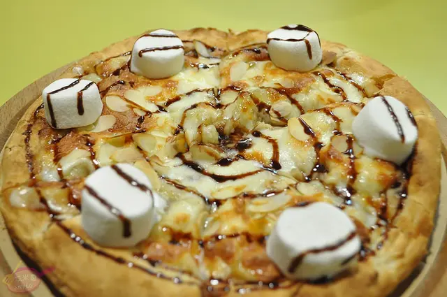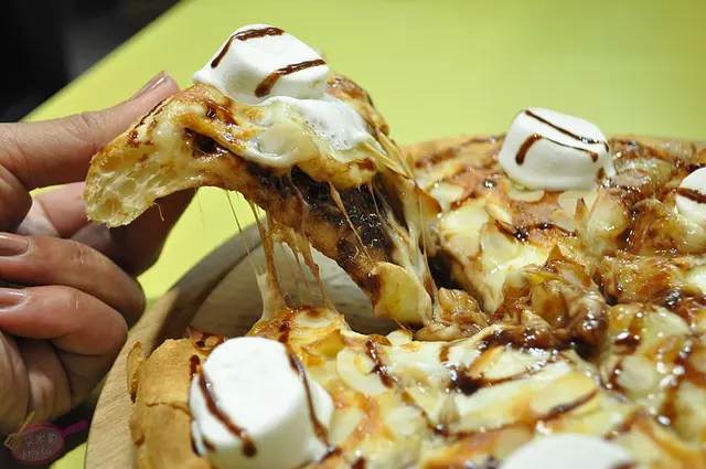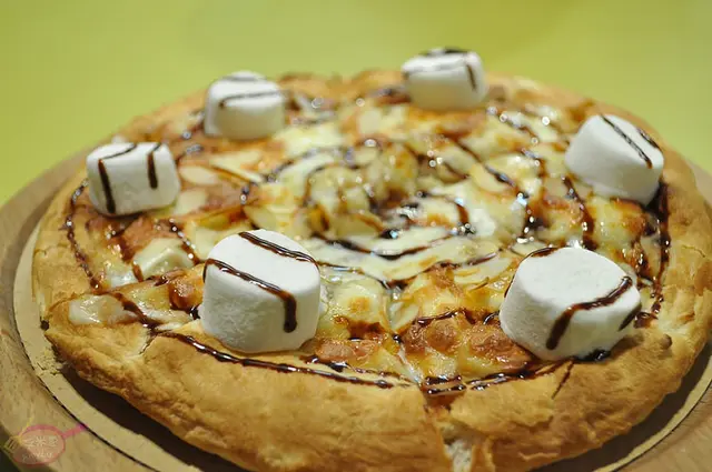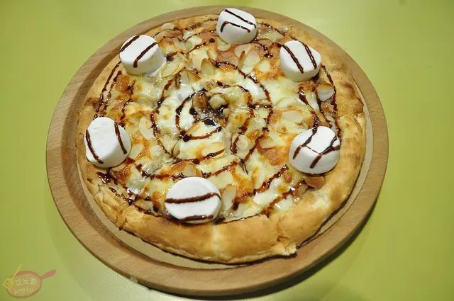 現烤披薩香酥上桌,空氣中瀰漫著巧克力甜甜的味道,眼睛亮了心花也開啦~~