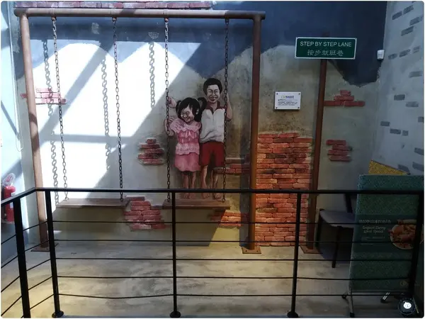 這裡是按部就班巷,可以跟小朋友一起盪鞦韆合照~