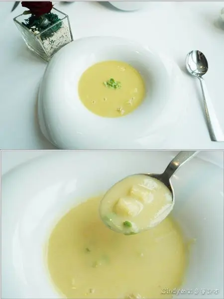 今日的湯品是甜玉米濃湯 裡面還有不少的玉米筍