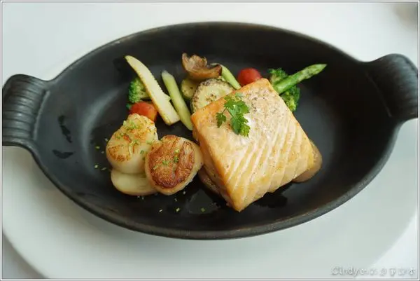 今天的魚是鮭魚~還襯著好多的蔬菜~好喜歡!!