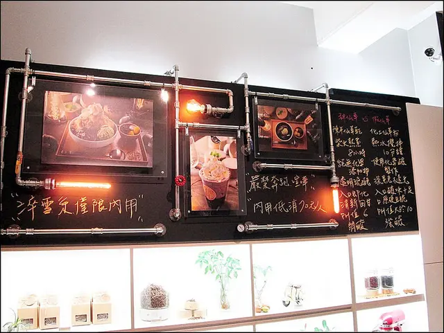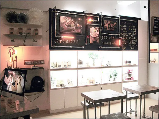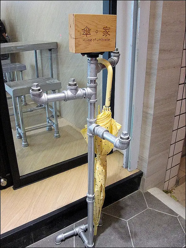 從大門前的傘架,就可以看出神仙草的裝潢走的是工業風格,到處有水管組架