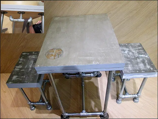 點好餐,坐下來才發現神仙草的桌椅很特別,充滿工業風格,老闆說他們的桌椅都是特別訂製的