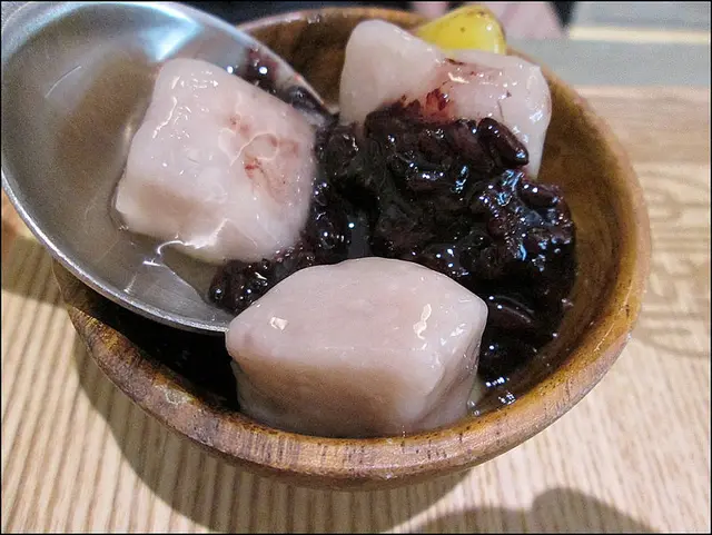 點盛盤就會多附上這一小碗,內容有芋圓、薯圓、紫米、以及加在嫩仙草上的紅豆