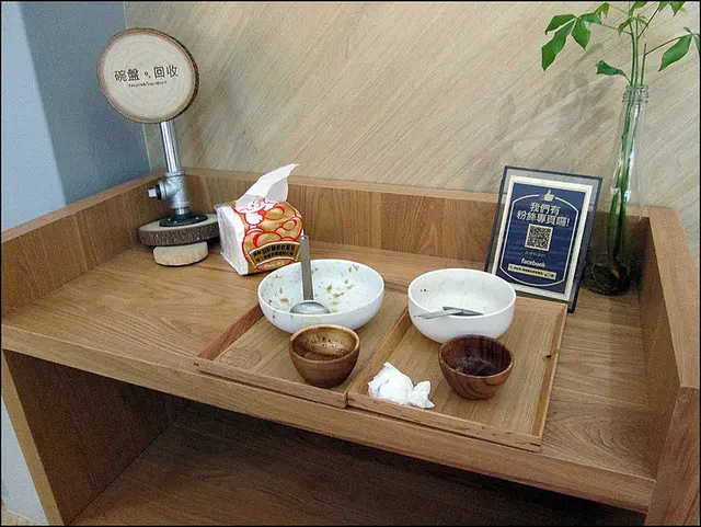 神仙草的店裡用餐上餐時底下都有托盤,用餐完畢記得要自助將碗盤回收到指定地點唷