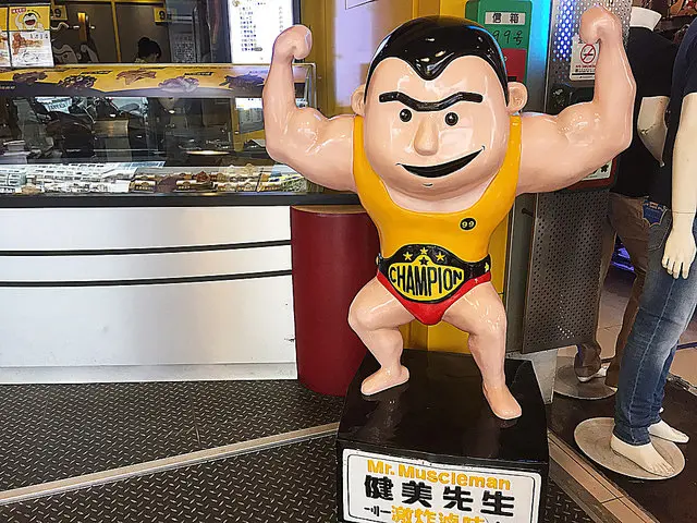 黃色招牌和可愛的健美先生logo在一整排店面中十分醒目