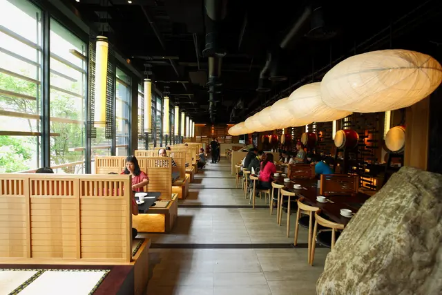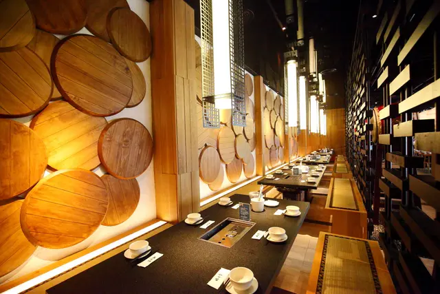 靠內側則是用許多太鼓及木柵欄做區隔,使用塌塌米座椅,值得一提的是昭日堂的桌子都很大,擺在再多菜也不會感到擁擠
