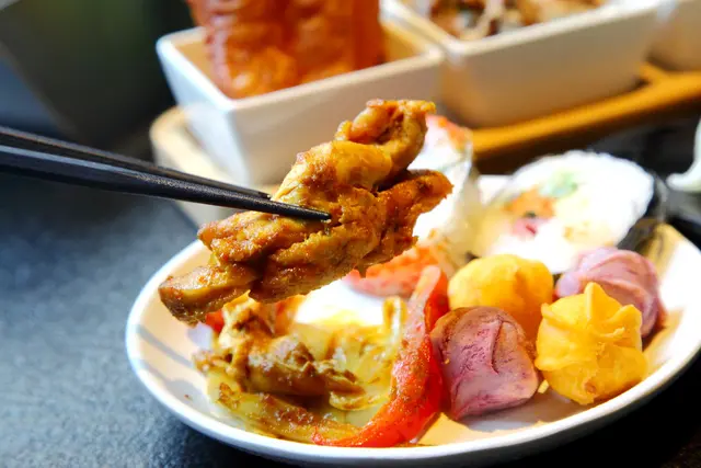 無國界料理、小菜、炸物,主廚每日會變換料理種類,像是今天有沙嗲烤肉串、炒麵、時菇炒雞肉,每次來都有不同的味覺感受呢