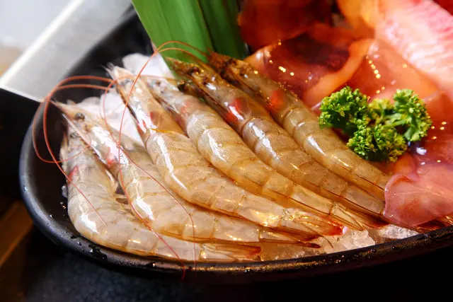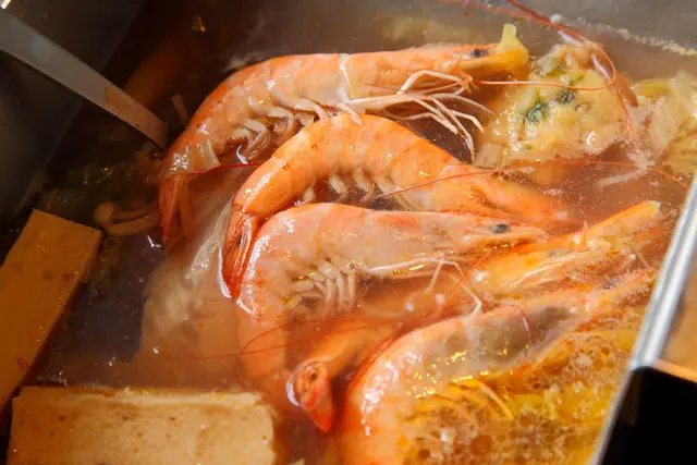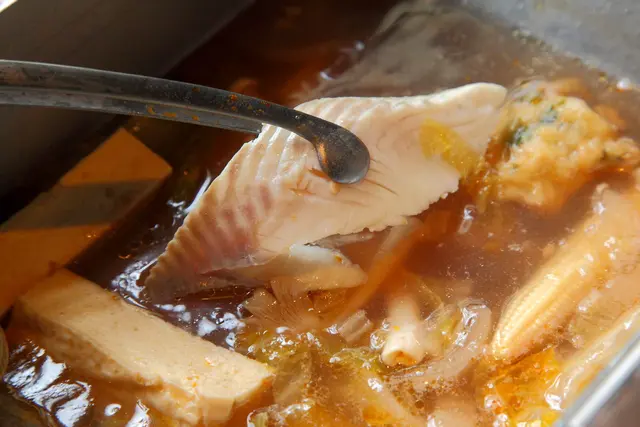 涮海鮮,天香酸釀白菜鍋涮海鮮一級棒!因為沒有一般酸白菜鍋濃郁的酸味,再加上加入了甜酒釀,涮起海鮮格外美味,完全不用沾醬單吃就很鮮美,鯛魚片本身並沒有太突出的味道,一般涮完還要搭配醬料,但這裡完全不用,光靠湯頭來提鮮就綽綽有餘!
