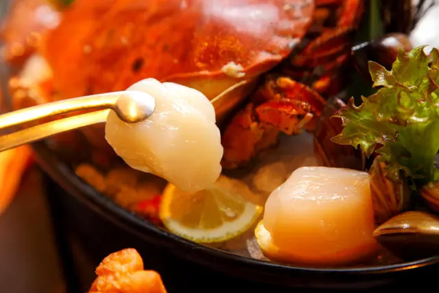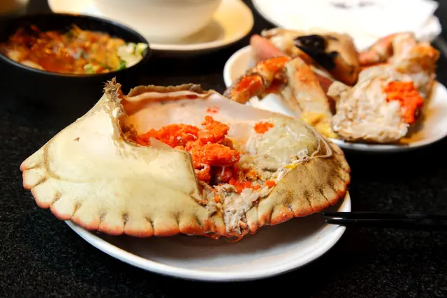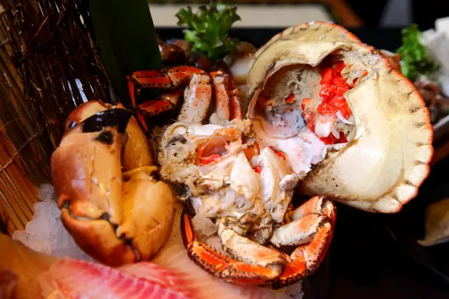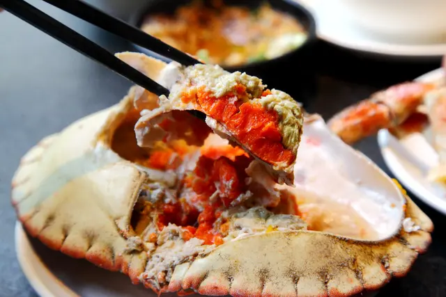 海鮮裡面最令人矚目的還是這隻霸王級的德文郡蟹,德文郡蟹也就是我們俗稱的麵包蟹或是玫瑰膏蟹,有蟹膏之王的稱號