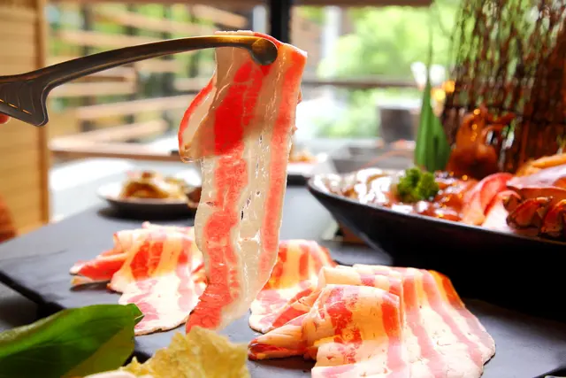 從這盤滿載的紅白肥瘦相間安格斯培根牛就可以感受到昭日堂鍋煮的滿滿誠意,就是要讓你吃飽飽!