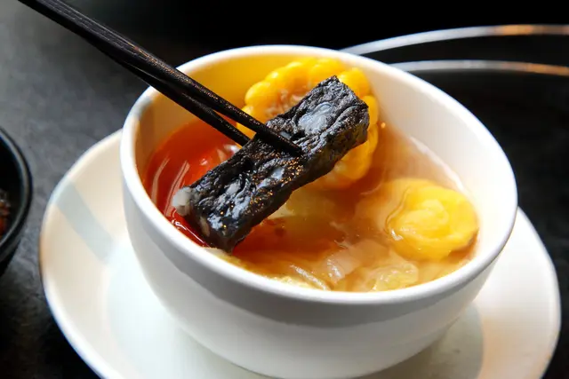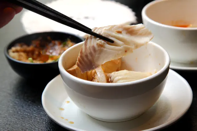 招牌秘制香滷鴨血,嚴選老根茶葉、月桂葉、八角等香料,搭配冰糖與老抽黃金比例,小火精滷後急速冰鎮,口感滑溜溜且軟嫩入味