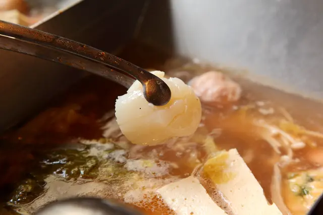 川味麻香辣椒鍋,與一般麻辣鍋不同的是,昭日堂著重的是麻辣鍋的香氣,湯頭在還沒入口時一靠近嘴邊就可以聞到濃郁的麻辣香氣,單喝一口湯,可以感受到湯底本身的高湯甜味,辣度很輕,就像在舌尖輕輕帶過一般,很順口,是可以大口喝的清爽麻辣湯頭唷