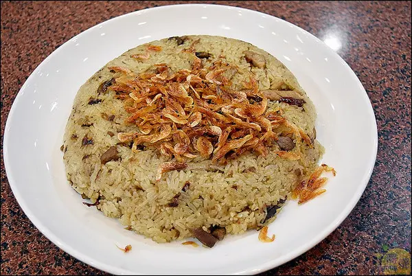 以自製的紅蔥頭、豬肉絲、香菇等為材料,再加上麻油蒸出來的米糕,是傳統古早味作法