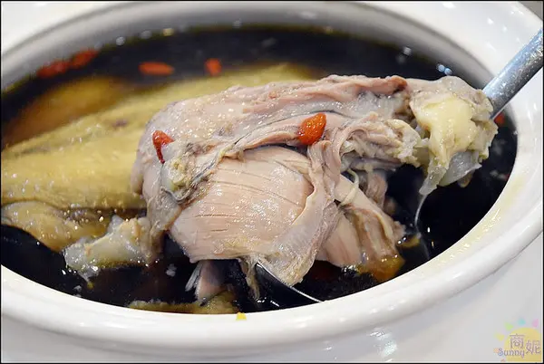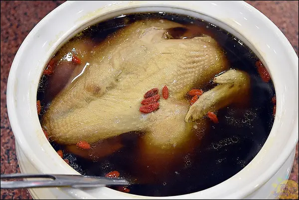湯裡融入何首烏藥材、枸杞的甘與雞肉的甜味,一整個好喝