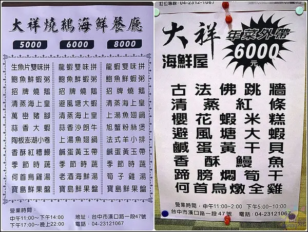 大祥海鮮燒鵝餐廳位在漢口路一段,漢口國中斜對面