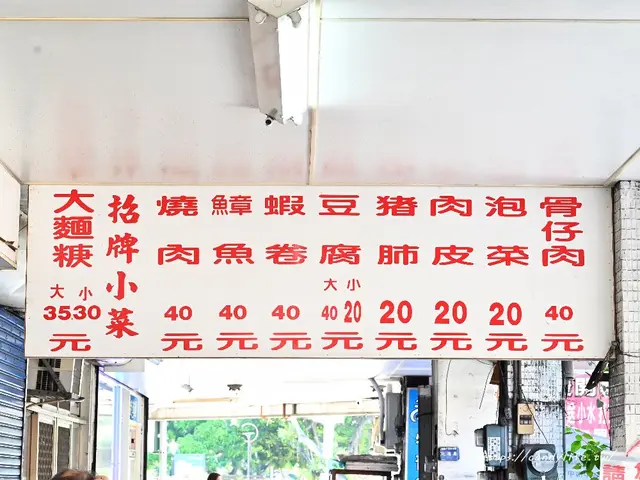 台中大麵羹除了招牌大麵羹,小菜也是店裡頭的招牌,像是燒肉、豆腐及章魚都是人氣必點