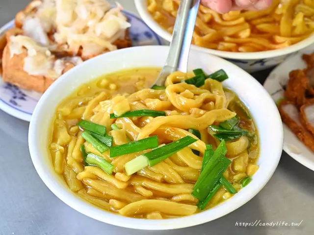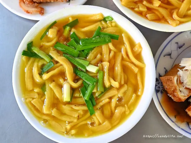 這間台中大麵羹的麵體好像比糖糖吃其他間的大麵羹再粗一點點,湯頭會勾芡,不知道糖糖吃到的這一碗是不是剛煮不久,麵體沒有到很爛,也沒有太入味的感覺,跟其他間比起來鹼味也比較重一些,糖糖個人還是比較愛吃麵體很爛很爛的大麵羹