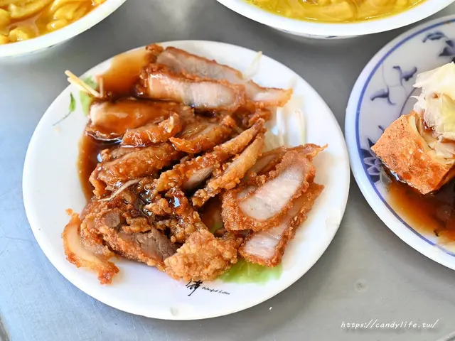 吃大麵羹就是要配燒肉吃才讚,台中大麵羹的燒肉還不錯,肥瘦勻稱,外皮炸的很酥脆,裡頭的肉質很紮實,吃起來不會乾乾的