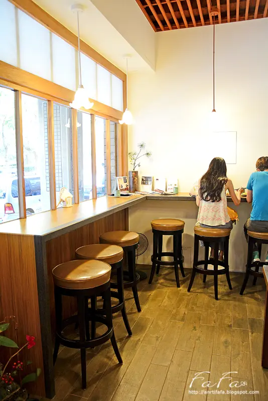 入口處旁吧檯座位,面對的不是廚房,欣賞的景色是對面綠園道。