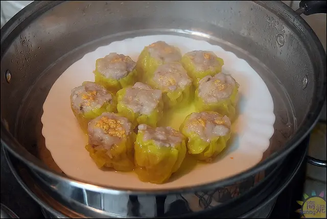 滿滿的豬肉餡,裏頭還有香菇、蝦仁,看起來就跟在茶樓吃到的一模一樣