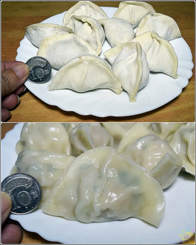每一顆水餃個頭都很大,每一顆形狀不完全一樣,看得出是手工包的