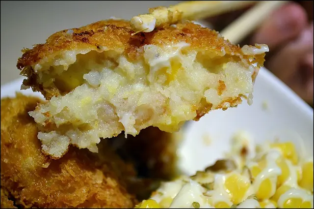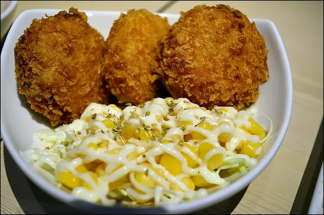 非常日式的可樂餅裡面有大量的馬鈴薯泥以及玉米粒,吃起來香甜滑口