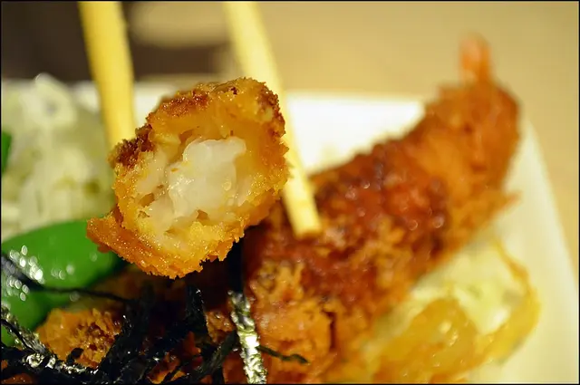 炸蝦比一般日本料理吃到的炸蝦還要緊實些,口感也比較Q,有新鮮