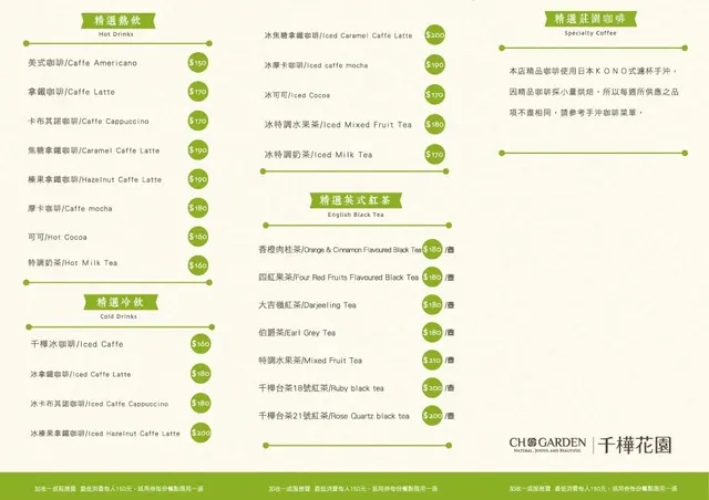 千樺花園的下午茶,提供多樣化的咖啡和飲品
