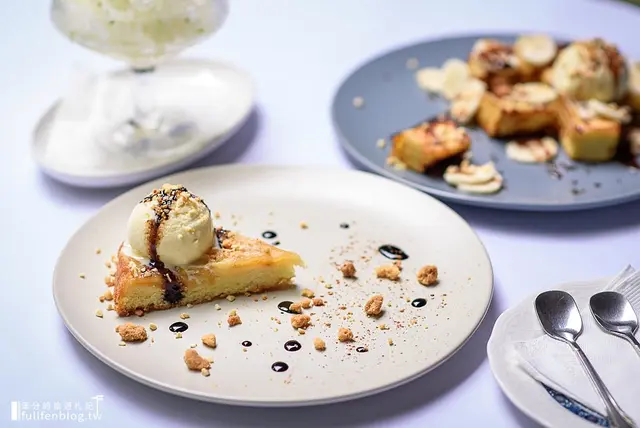 再搭配主廚自製的香草冰淇淋及巴薩米克醋