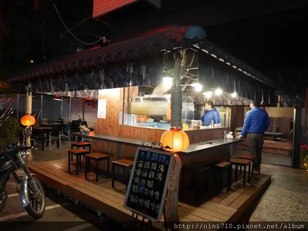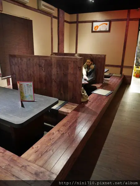 有著濃濃日式氛圍的木頭小店,這種座位不需脫鞋子,可以直接踩進去,原本我以為要脫鞋子勒!想說豬弟他們已經上一天班了腳可能很臭,幸好不用脫鞋