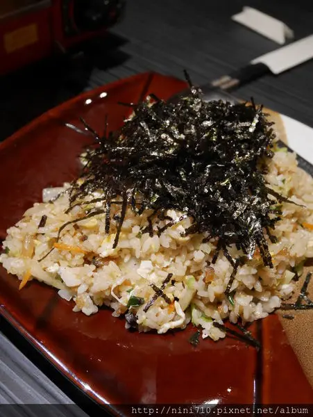 日式炒飯,就像一般蛋炒飯上灑上大量海苔絲,口味也頗為特別的,但是是特別好吃的特別唷!
